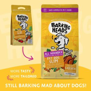 FAT DOG SLIM visavertis pašaras sumažinto kaloringumo suaugusiems šunims su vištiena.„Barking Heads Fat Dog Slim“ specialiai sukurtas šunims, kuriems reikia stebėti svorį. Šis skanus receptas, naudoja tik aukščiausios kokybės natūralius ingredientus.Sudėtis: vištiena 50%, (laisvai auginamų vištų mėsa 26%, džiovinta vištiena 21%, vištienos sultinio padažas 3%), ryžiai 14%, avižos 12%, žirniai 12%, miežiai, bulvės 7%, liucernos, lašišos taukai 1%, mineralai, mielių produktai 1000mg/kg, cikorijos šaknis (FOS 1000mg/kg), jūros dumbliai, gliukozaminas 500mg/kg, džiovintos morkos 500mg/kg, prieskonių perdirbimo produktai (pipirmėtė, rosmarinas, raudonėlis ir čiobreliai) 500mg/kg, beta gliukanas, chondroitino sulfatas 150mg/kg. Patvirtinta veterinarijos gydytojų – patvirtinta veterinarijos profesionalų visoje JK.Analitinės sudedamosios dalys: Žali baltymai 24%, žali riebalai 9.5%, žalia ląsteliena, 4%, žali pelenai 8%. Energetinė vertė: 343 kcal/100g.Priedai/kg: Maistiniai priedai: vitaminas A 17.000TV, vitaminas D3 1.000TV, taurinas 1000mg, vitaminas E 150mg, L-karnitinas 50mg, geležis (glicino hidrato geležies (II) chelatas) 60mg, cinkas (Cinko sulfatas monohidratas) 50mg, manganas (mangano sulfato monohidratas) 50mg, cinkas (glicino cinko chelatas hidratas (skysto pavidalo)) 15mg, varis (glicino vario (II) chelatas hidratas (kieto pavidalo)) 5mg, jodas (kalcio jodatas, bevandenis) 1,5mg, selenas (natrio selenitas) 0,05mg.Maitinimo nuorodos: Mūsų normos lentelėje yra patariamosios. Prašome pasitikrinkite pas savo veterinarijos gydytoją ar Jūsų šuo yra tinkamo svorio. Patariame keisti 25% seno pašaro šiuo pašaru, kas antrą dieną iki tol kol visu 100% pereisite prie Barking Heads. Gyvūnas visada turi turėti švaraus vandens. Laikyti uždarytą, vėsioje, sausoje, tamsioje vietoje.