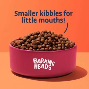 Visavertis pašaras mažų veislių suaugusiems šunims su vištiena.Sudėtis: vištienos 50% (laisvai auginamų vištų mesa 31%, džiovintos vištienos 14%, vištienos sultinio padažo 2.5%, vištienos riebalai 2.5%), ryžiai 26%, avižos, žirniai 10%, liucernos, lašišų taukai 1%, mineralai, mielės 1000mg/kg, cikorijos šaknys (FOS 1000mg/kg), jūros dumbliai, džiovintos morkos 500mg/kg, prieskonių perdirbimo produktų (pipirmėtė, rosmarinas, raudonėlis, čiobrelis) 500mg/kg, Beta gliukonatas. Patvirtinta veterinarijos gydytojų – patvirtinta veterinarijos profesionalų visoje JK.Analitinės sudedamosios dalys: Žali baltymai 25%, žali riebalai 14%, žalia ląsteliena 3%, žali pelenai 7%, Omega-6 riebiosios rūgštys 2,8%, Omega-3 riebiosios rūgštys 0,5%.Priedai/kg: maistiniai priedai: vitaminas A (Retinilo acetatas) 17000TV, vitaminas D3 (Cholekalciferolis) 1000TV, vitaminas E (visų racematų alfa tokoferilacetatas) 100mg, geležis (geležies (II) sulfato monohidratas) 60mg, cinkas (cinko sulfato monohidratas) 50mg, manganas (mangano sulfato monohidratas) 50mg, cinkas (Glicino cinko chelatas hidratas) 15mg, varis (vario (II) sulfato pentahidratas) 5mg, jodas (kalcio jodatas, bevandenis) 1,5mg, selenas (natrio selenitas) 0,05mg.Maitinimo nuorodos: Mūsų normos lentelėje yra kaip patarimas. Prašome pasitikrinkite pas savo veterinarijos gydytoją ar Jūsų šuo yra tinkamo svorio. Patariame keisti 25% seno pašaro šiuo pašaru, kas antrą dieną iki tol kol visu 100% pereisite prie Barking Heads. Gyvūnas visada turi turėti švaraus vandens. Laikyti uždarytą, vėsioje, sausoje, tamsioje vietoje.