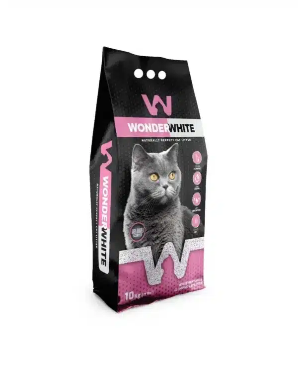 Privalumai: „Wonder White Baby Powder” bentonitinis kačių kraikas yra iki 99,5% be dulkių. Greitai sugeriantis katės šlapimą ir nemalonius kvapus. Neprilimpantis prie katės letenėlių.