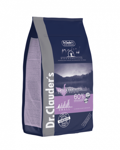 Subalansuotas sausas maistas suaugusiems mažų veislių šunims su antiena, bulvėmis ir obuoliais, kurių sutrikusi mityba ir sumažėjęs apetitas.Šis produktas išsiskiria kaip ypatingai mažai alergenų turintis ir itin lengvai virškinamas maistas. Gamyboje naudojami tik vienos rūšies gyvūninės ir augalinės kilmės baltymai. Taip pat palaikoma imuninė sistema, stabilizuojamas virškinimas.