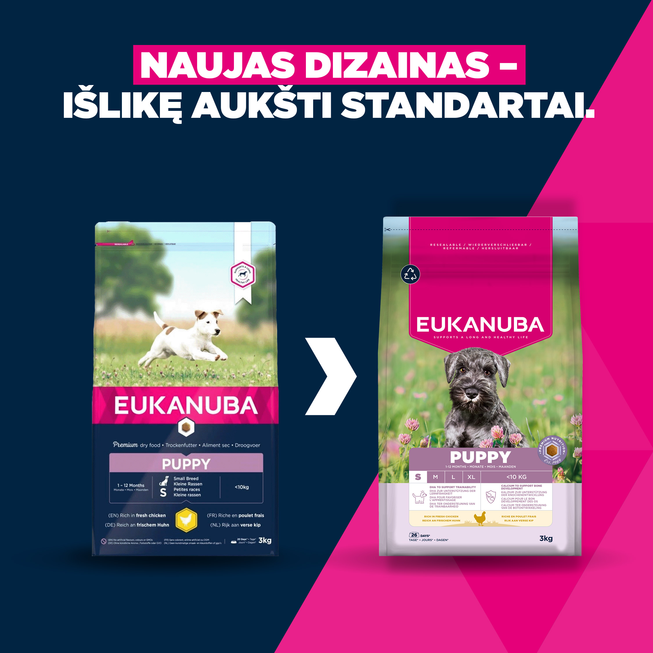 Eukanuba Small Breed Puppy Chicken – premium šuniukų maistas su vištiena.