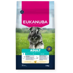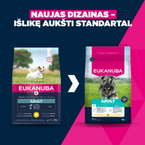 Eukanuba sauso ėdalo granulėse gausu šviežios vištienos, jis puikiai tinka suaugusiems mažų veislių šunims nuo 1 iki 8 metų. L-karnitinas, esantis sausame Eukanuba ėdale, padeda mažinti kūno riebalų kiekį ir išlaikyti optimalų jūsų šuns svorį, mažiau apkrauna sąnarius. Pritaikytas prebiotikų FOS ir cukrinių runkelių minkštimo skaidulų mišinys skatina sveiką virškinimą. Be to, dėl natūralių omega 6 ir omega 3 šaltinių Eukanuba granulės padeda išlaikyti sveiką odą ir blizgantį kailį. Ėdale taip pat yra antioksidantų, vitaminų E ir C, skirtų palaikyti šuns imuninę sistemą. Unikalios šešiakampės Eukanuba granulės ir DentaDefense dantų priežiūros sistema ilgainiui palaiko švarius, sveikus dantis. Ėdalas yra 100 % visavertis ir subalansuotas. Pažangi mityba suaugusiems mažų veislių šunims, palaikanti optimalią kūno būklę ir gerovę visą gyvenimą.