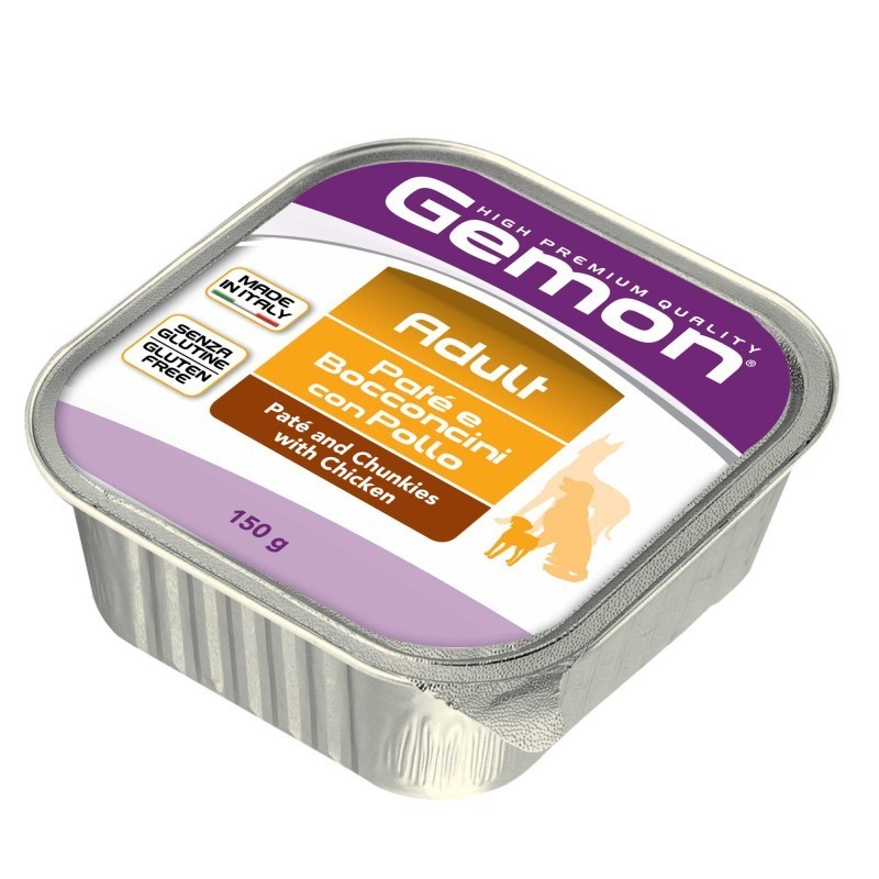 Gemon visavertis konservuotas paštetas su Vištienos gabaliukais, visų veislių suaugusiems šunims 150g
