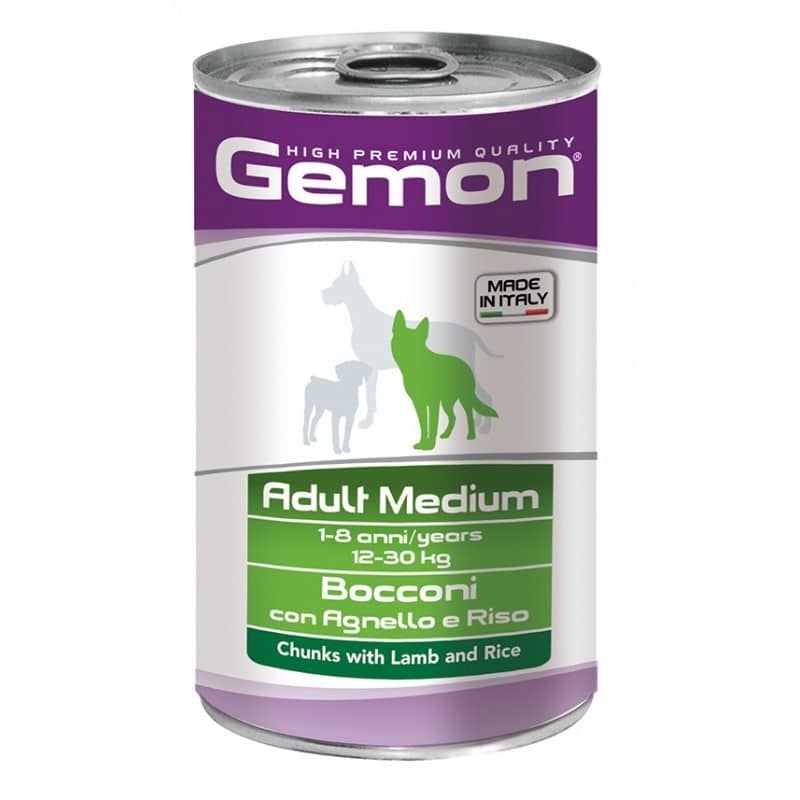 Gemon Adult Medium konservuoti Ėrienos gabaliukai su Ryžiais, vidutinių veislių suaugusiems šunims 1250g