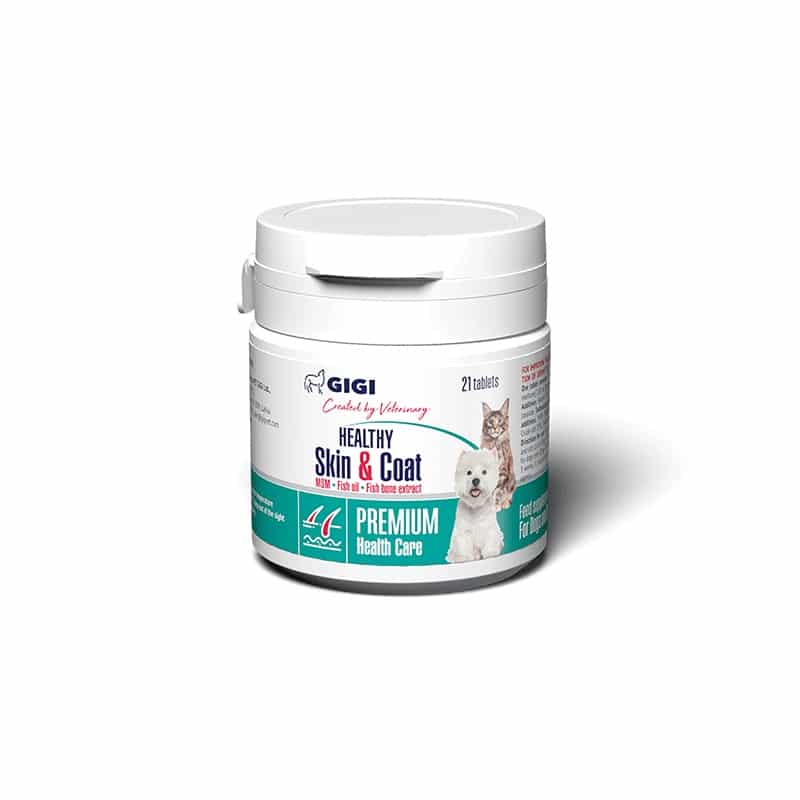 GIGI PERFECT Skin & Coat papildas šunims ir katėms palaikyti sveiką odą ir kailį – 21 tab.