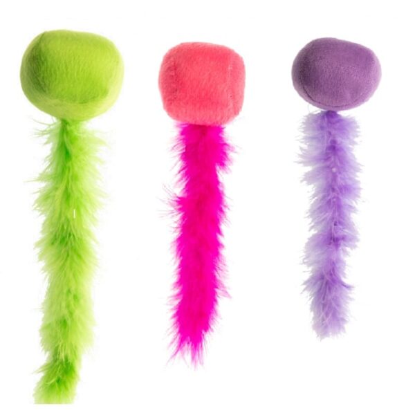 Nuostabus ir švelnus žaislas su katžole. Spalvos ryškios ir traukiančios akį. Dydis:kamuoliukas 5cm, uodega 10-12cm.