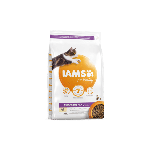 Kačiuko maistas su šviežia vištiena IAMS yra 100% visavertė ir subalansuota mityba, padedanti palaikyti 7 kačiuko sveiko gyvybingumo požymius, įskaitant augimą ir vystymąsi. Visa tai supakuota į skanų receptą, kuriame yra 91% gyvulinių baltymų (iš viso baltymų), kad jūsų augintinis galėtų džiaugtis kiekvieną dieną.
