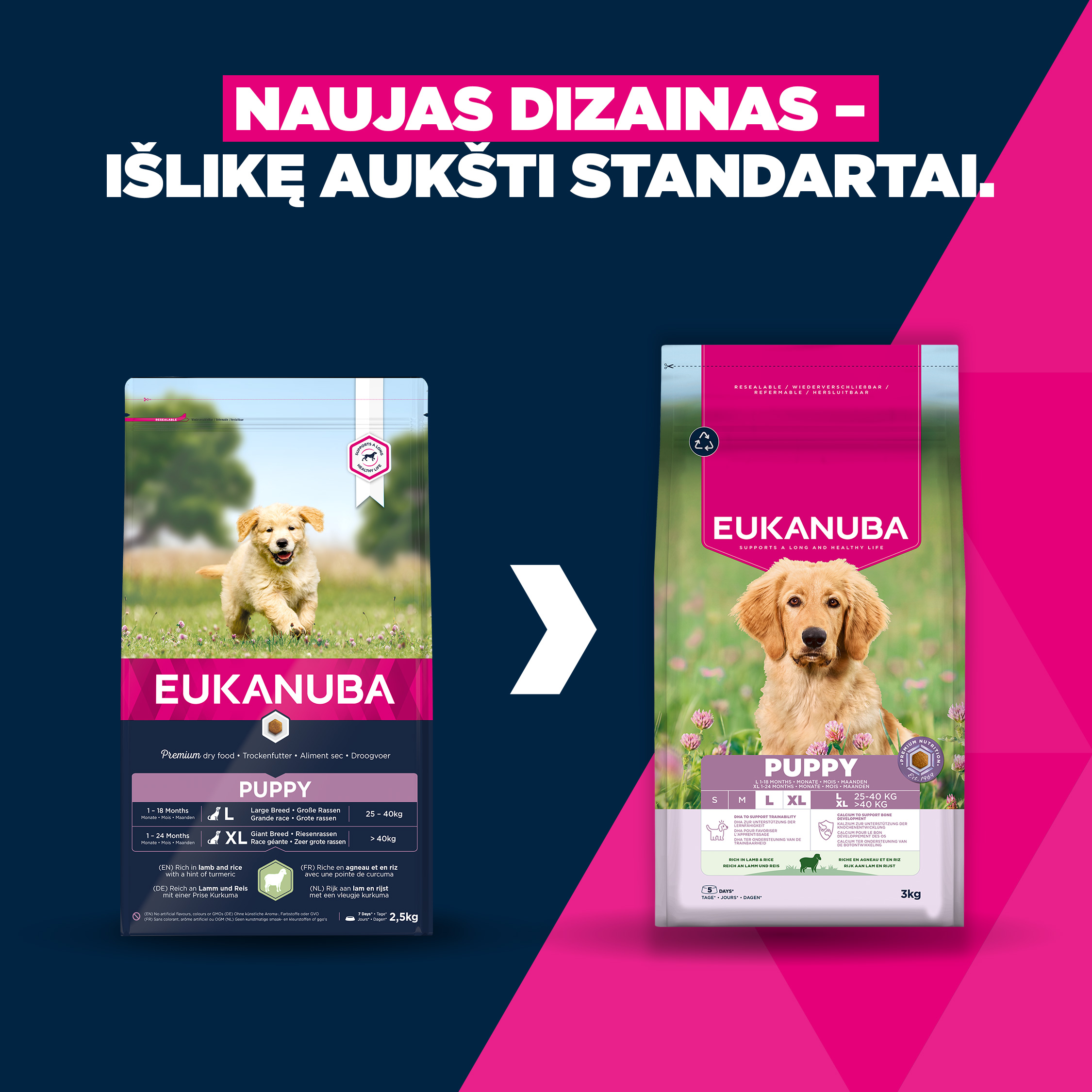 Pradžia Šunims Sausas maistas Eukanuba Eukanuba Life Care sausas pašaras didelių veislių šuniukams su ėriena ir ryžiais, L, 12 kg