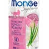 Monge Natural Superpremium Supreme Cat su tunu, kefale ir šparaginėmis pupelėmis yra subalansuotas maistas sterilizuotoms suaugusioms katėms. Gardi filė iš garuose virtos mėsos, kurioje išsaugomos visos maistinės vertės, o papildomai ji tampa lengvai virškinama.