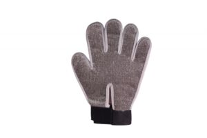Šukavimo pirštinė (dešinė) 2in1 Aukštos kokybės dvipusė pirštinė, skirta šukuoti jūsų augintinį. 1. Medžiagos pusė pašalina plaukus nuo palto ir drabužių. 2. Guminę pirštinės pusę galima naudoti kailiui valyti, masažuojant ir net maudant. Vienas dydis tinka visiems su elastingu Velcro dirželiu.