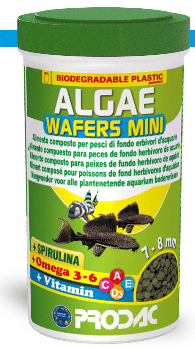 ALGAE WAFERS MINI sudėtinis pašaras tabletėmis dugninėms žolėdėms žuvims.Sudėtis: žuvis ir žuvies produktai, soja, dribsniai, grūdai, vėžiagyviai, daržovės, dumbliai 2,5%. EEC dažančios medžiagos.Analitinės sudedamosios dalys: žalių baltymų 45%, žalių riebalų 6,07%, žalios ląstelienos 4,64%, žalių pelenų 9,26% Omega-6 23,71%, Omega-3 11,66%, drėgnio 3%.Maistiniai priedai 1-ame kg: vit A 38.500TV, vit.D3 2.600TV, vit.C 1.500mg, vit.E 300mg.Naudojimas: 2-3 tbl. kiekvieną dieną atsižvelgiant į žuvų kiekį akvariume. Laikyti šaltoje, vėsioje vietoje.