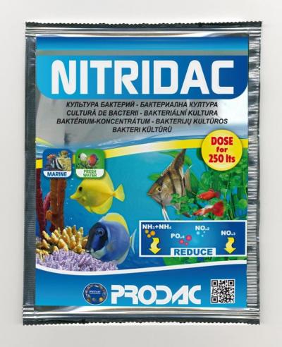 o nitritus į nitratus. NITRIDAC, sukeldamas spartų organinių medžiagų irimą, sumažina nuosėdų ir dumblių kiekį, apsaugo akvariumo