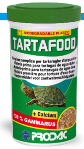 TARTAFOOD džiovintos krevetės specialiai paruoštos gėlavandeniams vėžliukams.Naudojimas: Po žiupsnelį 1-2 k. per dieną į indelį arba tiesiai į vandenį.Sudėtis: 100% džiovintos krevetės (gammarus).Analitinės sudedamosios dalys: žalių baltymų 47,37%, žalių riebalų 9,4%, žalios ląstelienos 5,75%, žalių pelenų 0,42%, kalcio 63.000mg/kg, drėgnio 7,67%.