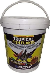 TROPICAL sudėtinis pašaras dribsniais visų rūšių tropinėms žuvims. Įvairių aukštos kokybės ingredientų mišinys yra būtinas gerai tropinių žuvų sveikatai.Sudėtis: javai, žuvis ir jos produktai, soja, mielės, vėžiagyviai, dumbliai, alavijas 0,1%. EEC dažančios medžiagos.Analitinės sudedamosios dalys: žalių baltymų 44,9%, žalių riebalų 4,47%, žalios ląstelienos 2,14%, žalių pelenų 4,35%, drėgnio 7,73%.Maistiniai priedai 1-ame kg: vit.A 41.200TV, vit.D3 3.760TV, vit.E 297mg, vit.C 180mg.Naudojimas: 1-2 žiupsneliai per dieną. Laikyti šaltoje vėsioje vietoje.