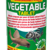 VEGETABLE  TABLET  sudėtinis pašaras tabletėmis dugninėms  žolėdėms tropinėms žuvims.Sudėtis: javai, žuvis ir jos produktai, soja, mielės, vėžiagyviai, dumblių 0.8%, alavijo 0,05%. EEC dažančios medžiagos.Analitinės sudedamosios dalys: žalių baltymų 45,1%,  žalių riebalų 5.02%, žalios ląstelienos 1,76%, žalių pelenų 4,15%, drėgnio 8,26%.Maistiniai priedai 1-ame kg: vit.A 46.000TV, vit.D3 4.000TV, vit.E 280mg, vit.C 200mg.Naudojimas: 2-3  tabl. per dieną, priklausomai kiek yra žuvų akvariume. Laikyti šaltoje vėsioje vietoje.