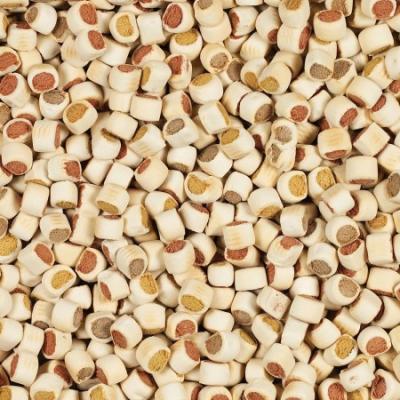 Sudėtis: javai, aliejai ir riebalai, daržovių produktai, mėsa ir mėsos produktai (min. 4% paukštienos), mineralai, pienas ir pieno produktai (min. 4 % sūrio), žuvis ir žuvies produktai (min. 4% lašiša). Analitinės sudedamosios dalys: Žalių baltymų 15.5%; neapdorotų riebalų 9.5 %; žalios ląstelienos 2%; žalių pelenų 5%.Priedai/kg:Maistiniai priedai: Vitamino A 5.000TV; vitamino D3 500TV; vitamino E 75mg, vario 7mg, cinko 20mg. Konservantai ir dažikliai leidžiami ES. Gyvūnui duoti kaip paskatinimą. Gyvūnas visada turi turėti švaraus vandens dubenėlį.