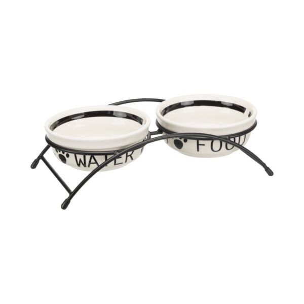 TRIXIE Dubenėlių kompl., keramika-metal., 2×0.25 l, ø 13 cm-27x7x14 cm, baltas-juodas