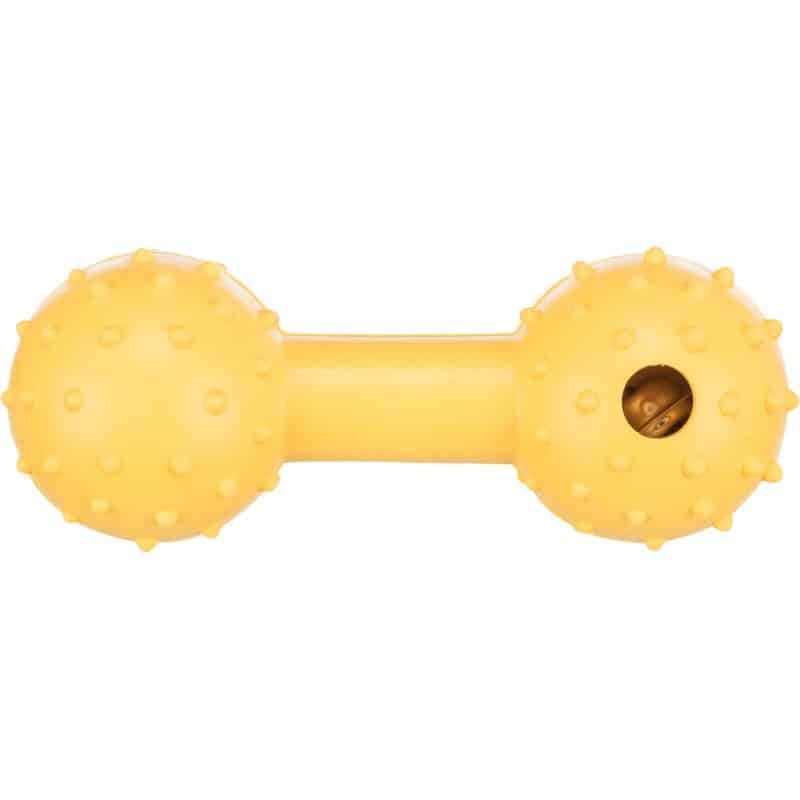 Trixie žaislas hantelis su varpeliu viduje ir iš natūralios gumos.