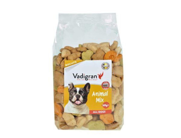 „Animal Mix“ sausainiai buvo specialiai sukurti mažiems ir dideliems šunims. „Animal Mix“ sausainiai yra mažo dydžio sausainiai. Kepti orkaitėje jie turi mažai riebalų, tačiau turi daug vitaminų. Todėl juos galima reguliariai duoti šuniui.Sudėtis: Javai, aliejus ir riebalai, augalinės kilmės dariniai, mineralai, mėsa ir gyvūninės kilmės dariniai.Analitinės sudedamosios dalys: žalių baltymų 12%, žalių riebalų 6.5%, žalios ląstelienos 8%, žalių pelenų 4.5%.Maistiniai priedai 1-ame kg: konservantai, antioksidantai, dažikliai, vit.A 5000TV, vit.D3 500TV.