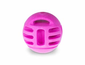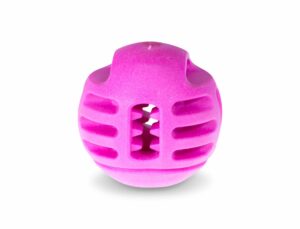 Kvepiantis braškėmis.Galima pridėti skanukų, kurie skatintų gyvūną žaisti.Galima žaisti vandenyje, nes žaislas neskęsta.Pakuotėje 3vnt.